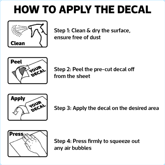 - Our decals are designed to withstand wear and tear. They are resistant to water, UV rays and fading, ensuring long-lasting use both indoors and outdoors.