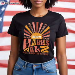 Harris Walz 2024 For Brighter Tomorrow Leopard Retro Sun Shirt