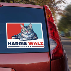 Harris Walz 2024 Obviously Democrat Cat Waterproof Car Decal, Kamala Harris Madam President, Vote Blue